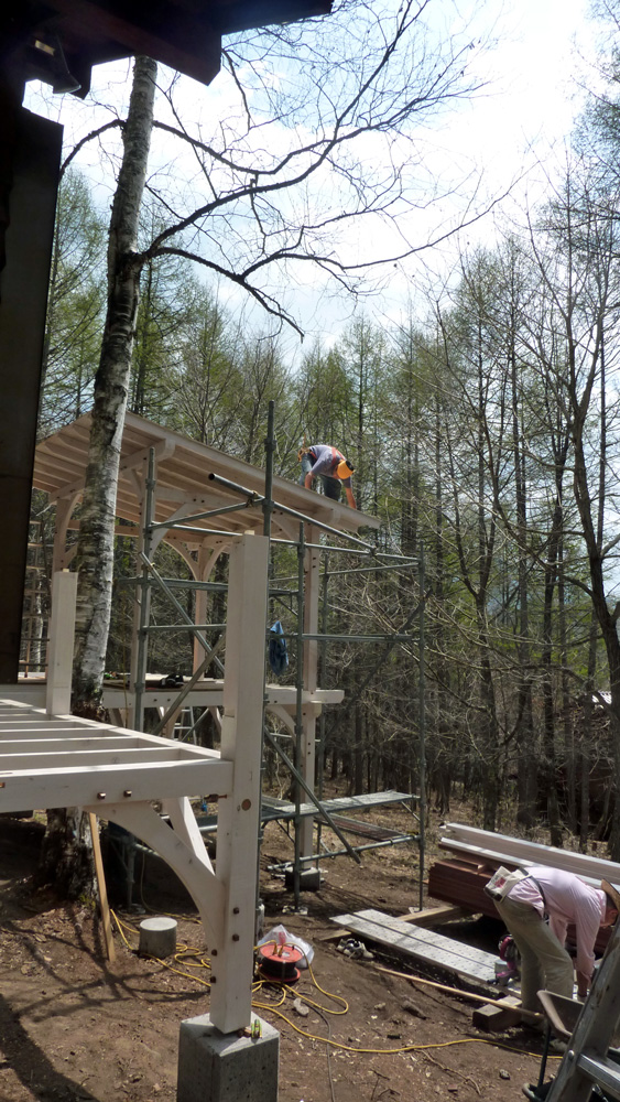 原村から来てくれた森田くんが、せっせと屋根を作ってくれます!
